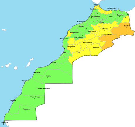Ainsi, quatre directions météorologiques régionales en 2002 et puis six directions météorologiques régionales en 2016, ont été créées (Centre (Agadir), Centre-Est (Beni Mellal), Centre-Ouest (Casablanca), Nord-Ouest (Rabat), Nord-Est (Fes), Sud (Laayoune)) afin de permettre l’élaboration et la mise à disposition de prestations plus adaptées à la Région.
